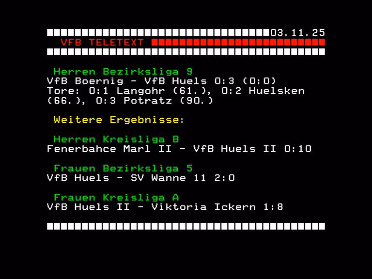 Mal einen Blick in den guten, alten Videotext: Hier die Ergebnisse unserer Teams vom Wochenende.